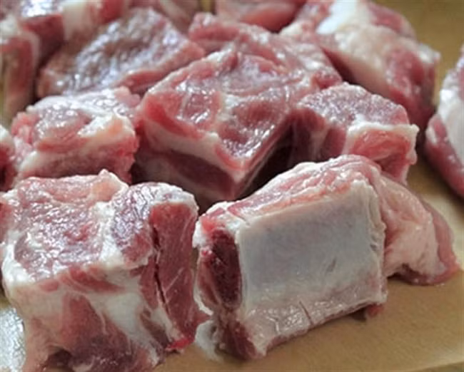 Sườn cho vào nồi nước đun sôi rồi tắt bếp, đổ hết nước đi và rửa lại bằng nước sạch cho hết vụn sườn, để ráo nước.