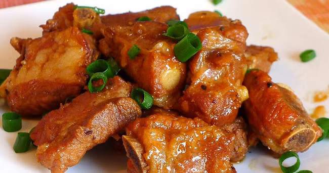 Sườn kho tộ dùng nóng với cơm rất ngon.
