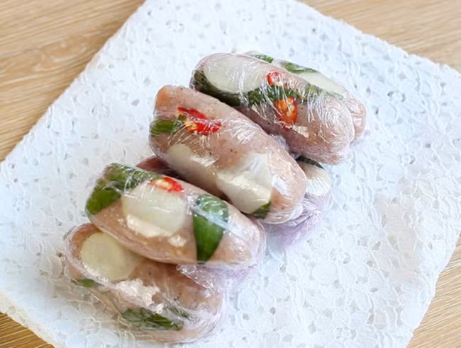 Xong xuôi, hãy nhẹ nhàng cuốn nem chua lại thành hình thù mong muốn, có thể là hình vuông, hình tròn, hình chữ nhật, hình tam giác hay dạng thanh dài truyền thống. Cuối cùng, hãy bọc lá chuối ra bên ngoài.