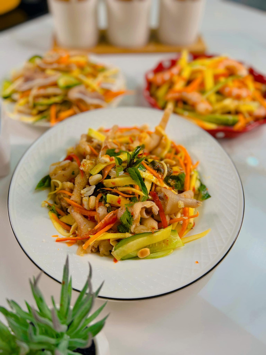 Chị Cao Giang (sinh năm 1993, đang sinh sống và làm việc tại Hà Nội) cho biết, các loại nộm chua ngọt chỉ cần một loại nước sốt trộn nộm đa năng, trộn được tất cả các loại nộm mà nhà nào cũng cần trong ngày Tết.
