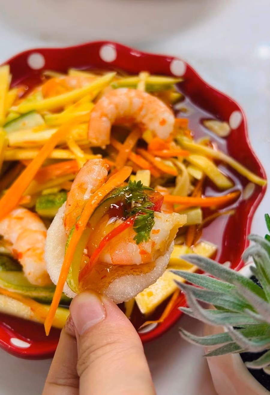 "Vị chua chua kích thích vị giác, vị ngọt đậm đà từ nước sốt thêm vào đó mọng giòn từ rau củ làm mình ăn 1 muốn ăn 2" - chị Giang chia sẻ.