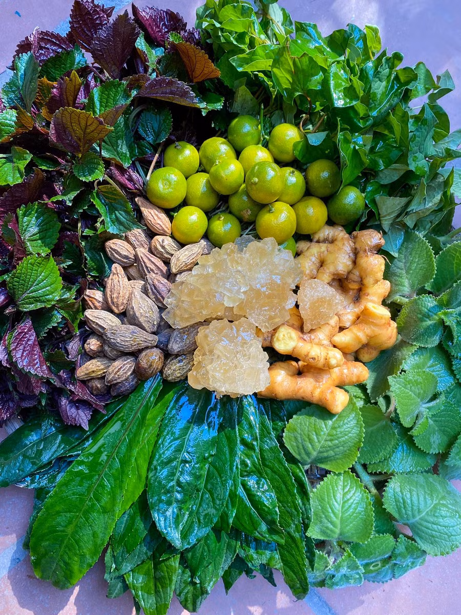 Tía tô, diếp cá, bạc hà, lá hẹ: mỗi loại 100gam