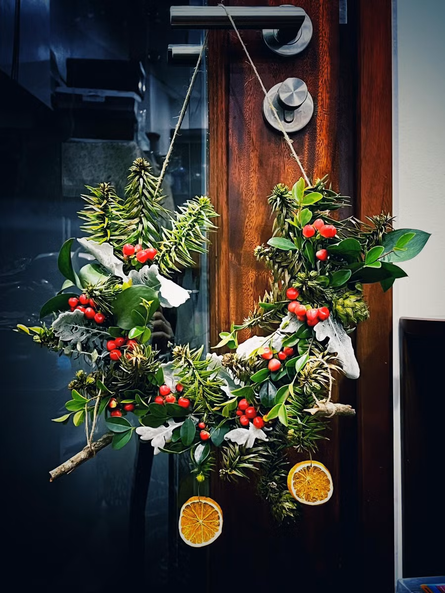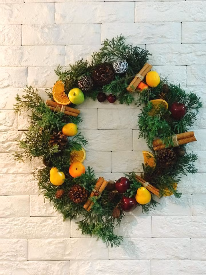 Để vòng nguyệt quế có mùi thơm xua tan giá lạnh mùa đông, các bà nội trợ có thể dán thảo quả, hoa hồi,... Nhìn vòng đã cân đối thì có thể buộc thêm các thanh quế và cài thêm vài lát cam sấy khô cho thơm và màu sắc sinh động.