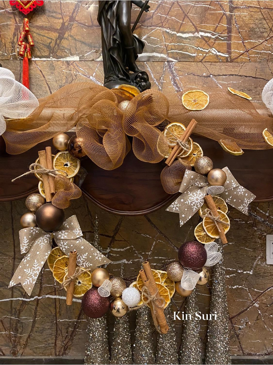 Đồ trang trí theo ý thích: cam sấy, thanh quế, que củi khô