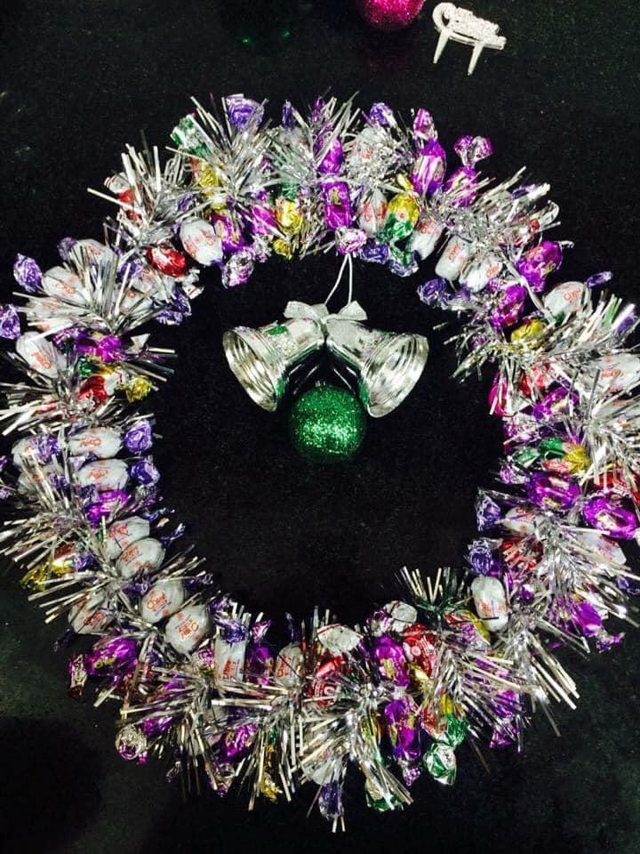 Vòng nguyệt quế bằng kẹo mix dây kim tuyến