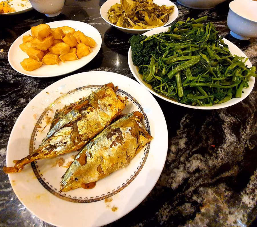 Ông xã Chúng Huyền Thanh không chỉ sở hữu ngoại hình điển trai mà còn đảm đang không kém khi có thể chuẩn bị cả một bữa tối ngon mắt, ngon miệng cho hai mẹ con cô.