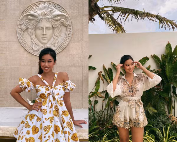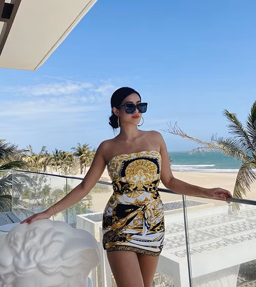 Vốn có đôi bờ vai trần thon gọn nên Tiên Nguyễn rất chuộng những set đồ trễ vai và có họa tiết bắt mắt. Mới đây, cô nàng khoe set đồ crotop màu hồng với họa tiết vô cùng nổi bật nhưng không hề lòe loẹt khiến chị dâu Hà Tăng khen ngợi hết lời.