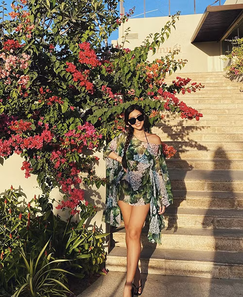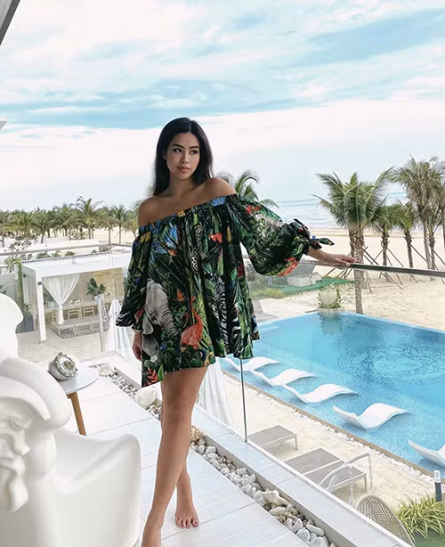 Vốn có đôi bờ vai trần thon gọn nên Tiên Nguyễn rất chuộng những set đồ trễ vai và có họa tiết bắt mắt. Mới đây, cô nàng khoe set đồ crotop màu hồng với họa tiết vô cùng nổi bật nhưng không hề lòe loẹt khiến chị dâu Hà Tăng khen ngợi hết lời.