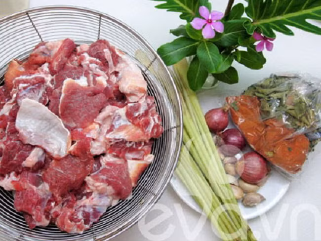 Thịt bò xát với rượu trắng và gừng, trụng nước sôi để khử mùi hôi của thịt