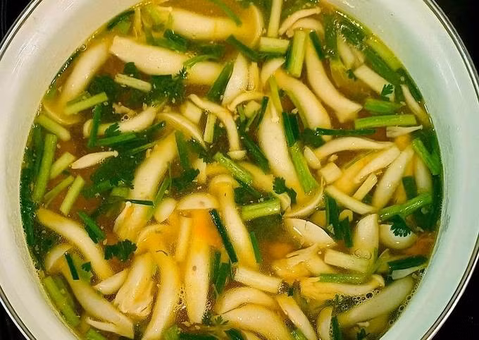 - Thịt bò, mướp, nấm, muối, hạt tiêu xay.