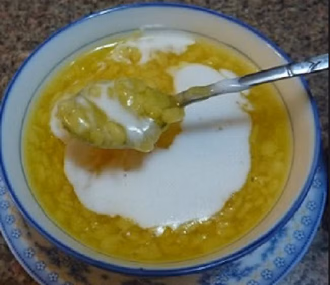 4, Cho ra bát và cho chút nước cốt dừa, trộn đều và thưởng thức
