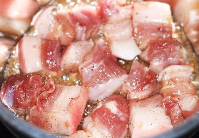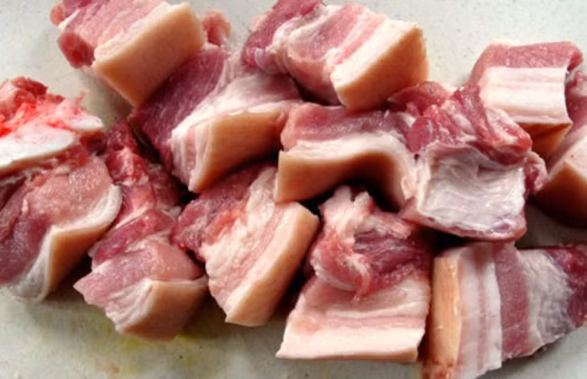 3, Rửa sạch, cắt nhỏ thịt ba chỉ.