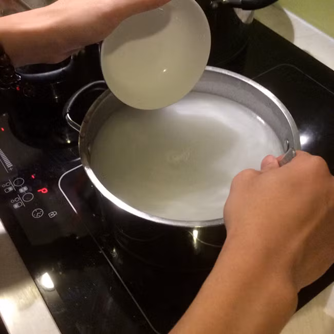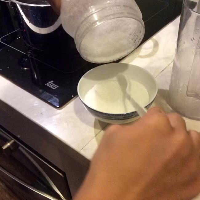 Trong lúc chờ nước nóng, chuẩn bị 3/4 chén đường (có thể thêm hoặc bớt tùy theo khẩu vị từng người).