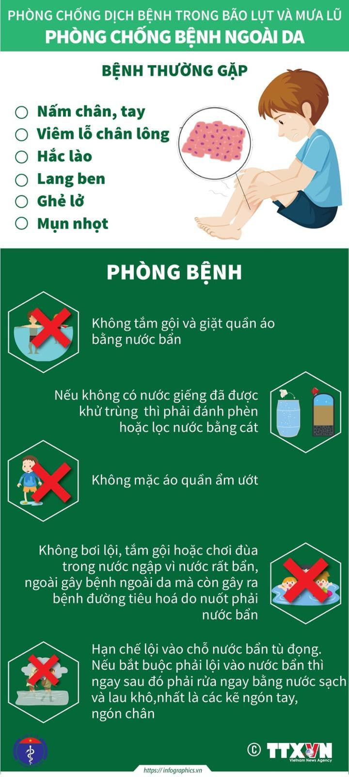 Đây là một chứng bệnh da hay gặp khi điều kiện vệ sinh sau mưa bão kém.