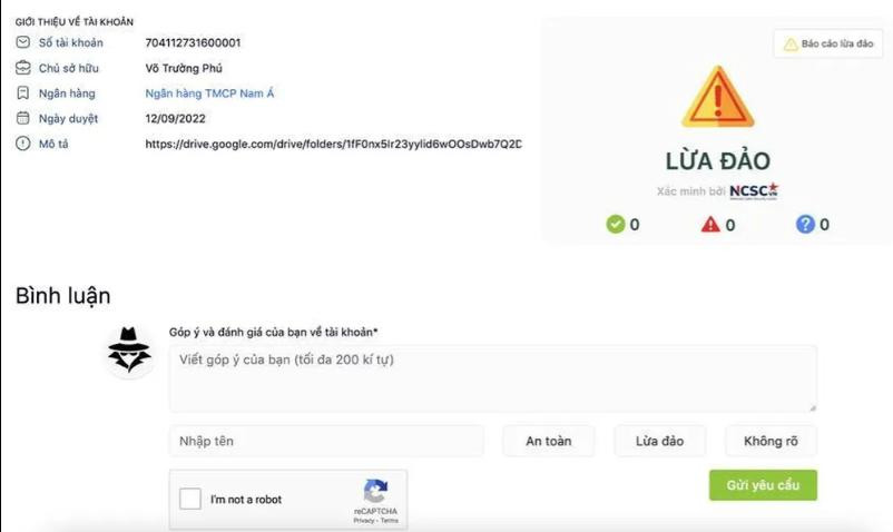 Thống kê, mỗi tuần NCSC nhận được hàng trăm báo cáo về các trường hợp lừa đảo qua mạng, với phần lớn trong số đó liên quan đến việc sử dụng tài khoản ngân hàng để thực hiện các hành vi lừa đảo.