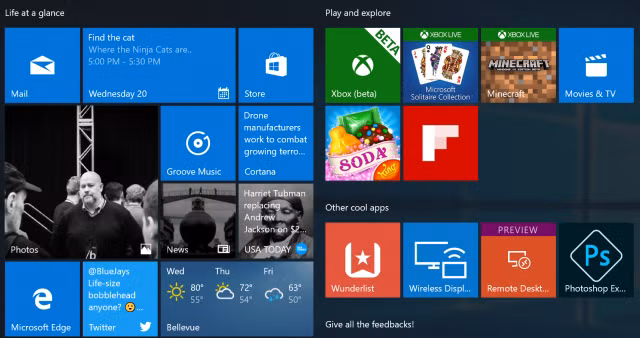 Mặc định Start Menu có 5 Tile hiển thị trên màn hình Start, đó có thể là những ứng dụng mặc định được cài đặt sẵn cùng với Windows 10 hoặc là các liên kết đến mục download của Windows Store. Trong bản cập nhật sắp tới của Windows 10, số lượng các Tile sẽ được tăng lên gấp đôi.