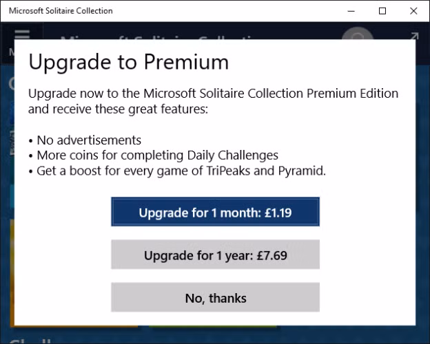 Một số game được cài đặt mặc định trên Windows như Solitaire hay Minesweeper trước đây không hề có quảng cáo, nhưng từ Windows 10 nó lại đi kèm rất nhiều quảng cáo phiền phức.