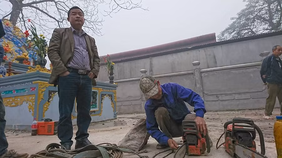 Ngoài ra, từ các khâu chặt hạ, đào rễ, vận chuyển cành gỗ sưa cất giữ vào thùng xe container ở nhà văn hóa thôn Phụ Chính sẽ được thực hiện bởi một nhóm thợ gồm 4 người, do cộng đồng thôn Phụ Chính thuê.
