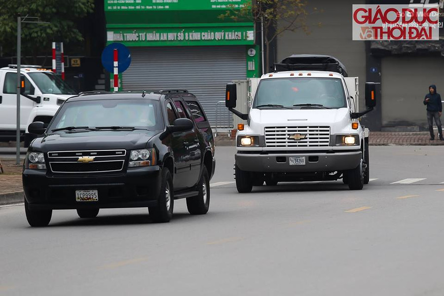 Dưới đây là hình ảnh đoàn xe chở mật vụ và thiết bị phục vụ Tổng thống Mỹ được PV Báo GD&TĐ ghi nhận: