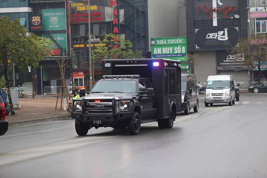 Trước đó, lúc 14h14, chiếc Boeing C-17A Globemaster III của Mỹ hạ cánh tại sân bay Nội Bài. Khoảng 10 phút sau, 6 ôtô chở thiết bị an ninh, máy soi chiếu phục vụ cho đoàn của Tổng thống Mỹ Donal Trump dự Hội nghị thượng đỉnh Mỹ - Triều ngày 27-28/2 rời sân bay hướng về nội thành.