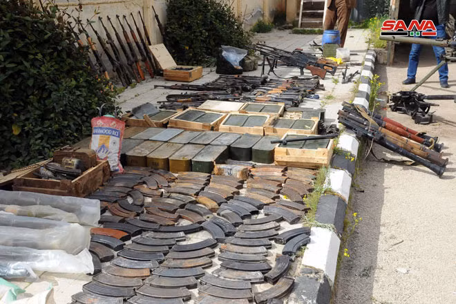 Theo đó, quân đội Syria đã phát hiện ra kho vũ khí này trong khi rà soát các thị trấn Al-Hara và Inkhil ở vùng nông thôn Daraa.