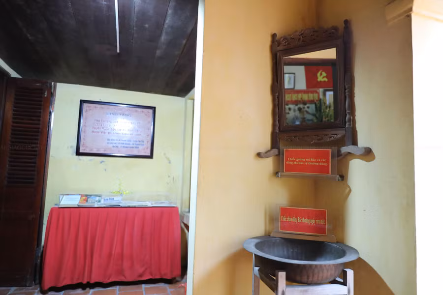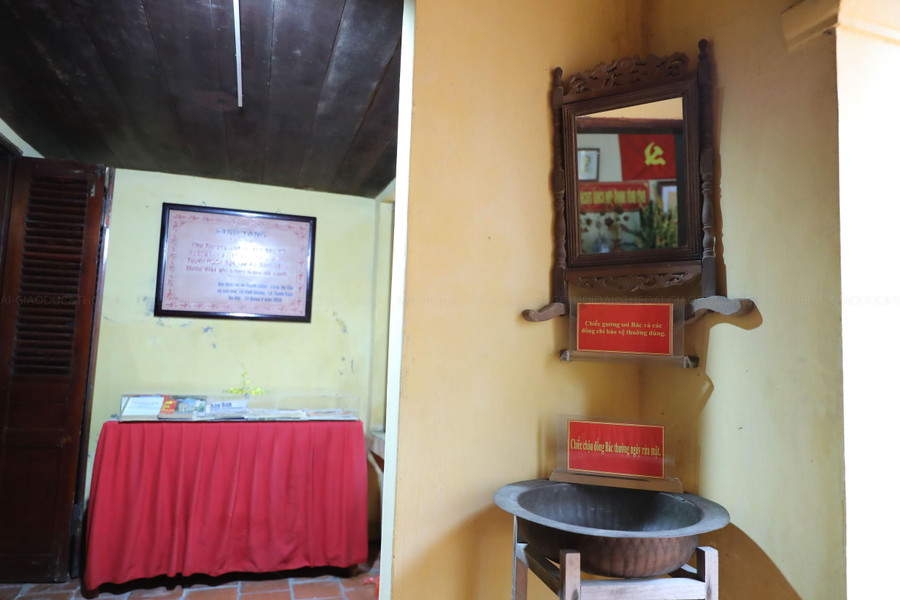 | Ông Công Ngọc Dũng, cháu nội của cụ An - người trông coi ngôi nhà hơn 30 năm nay, cho biết năm 1945, khi đoàn công tác hơn 10 người từ chiến khu Việt Bắc trở về đã dừng chân ở ngôi nhà này. Chủ tịch Hồ Chí Minh thường ngồi làm việc tại bộ tràng kỷ, tối ngủ ở sập. |