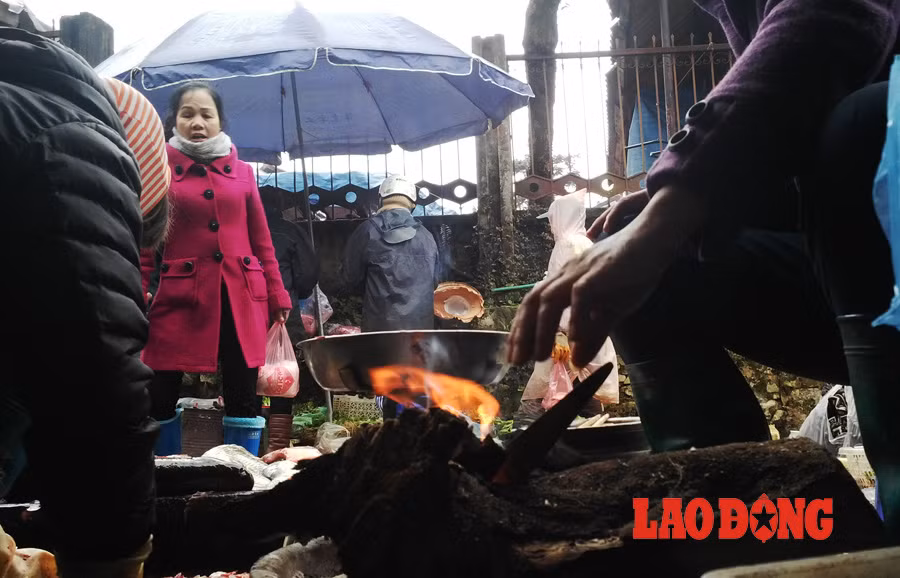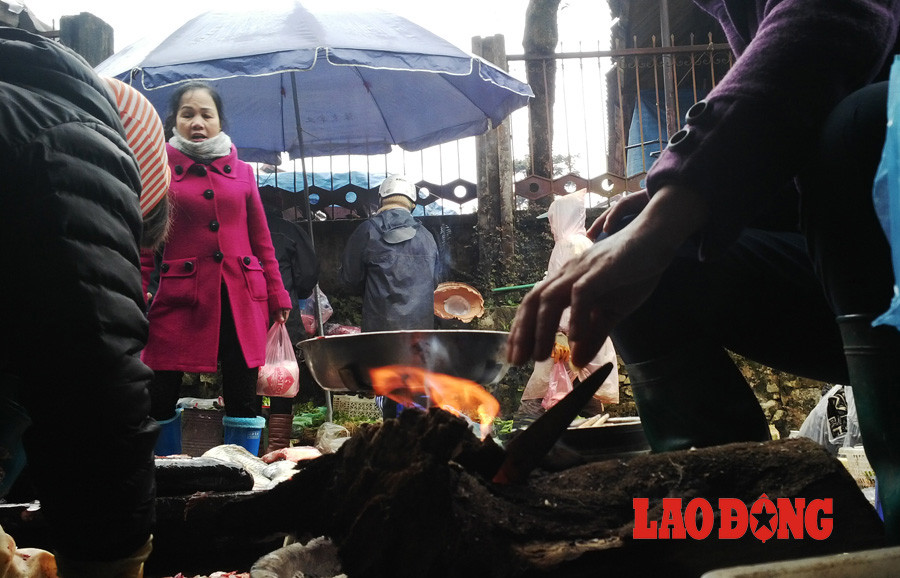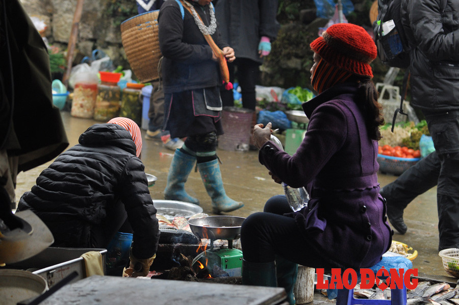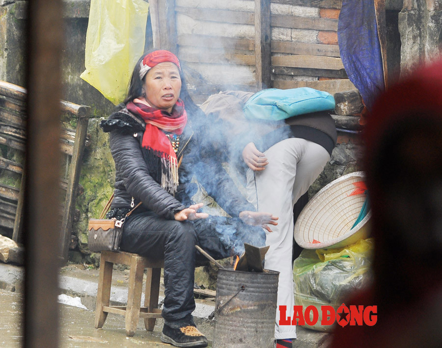 Tại khu vực chợ Sa Pa nhiều tiểu thương đã phải đốt lửa để sửa ấm trong quá trình buôn bán.