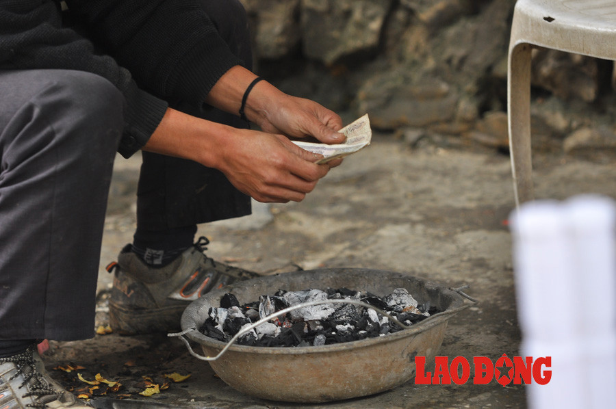 Than đá nhỏ được đốt trong lò nhỏ được người dân để ngay bên cạnh.