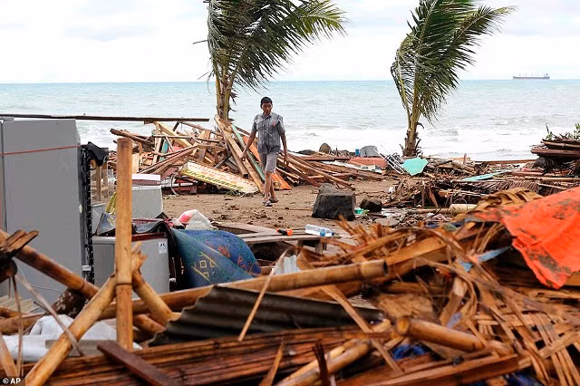 Ngọn sóng thần cao gần 5 mét xảy ra vào 9.30 phút đêm qua, phá hủy 430 ngôi nhà, 9 khách sạn và 10 con tàu.