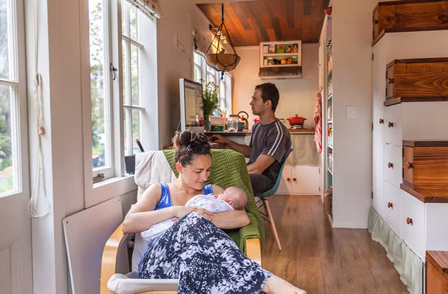 Không gian tuy nhỏ bé nhưng hai vợ chồng cùng con nhỏ sống rất ổn và vô cùng hạnh phúc.