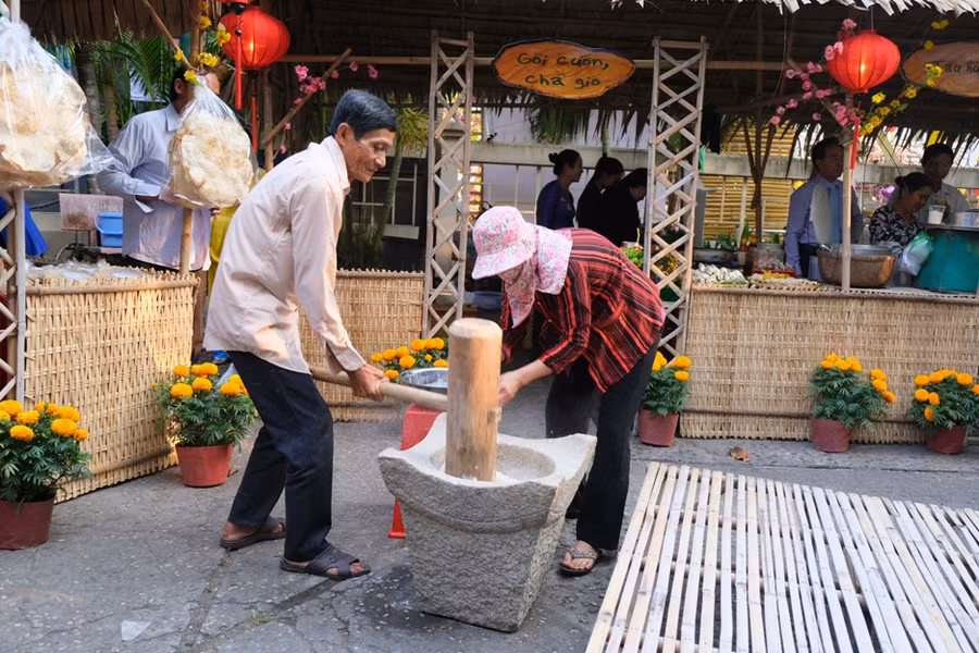 Theo đó, chương trình có 45 loại hình hoạt động, với 112 nghệ nhân tham gia trình diễn chế biến các loại bánh dân gian đặc trưng ngày Tết như: bánh tét, bánh phồng, bánh tráng, bánh gừng … và các loại thực phẩm, vật dụng trang trí không thể thiếu trong dịp Tết đến, Xuân về.