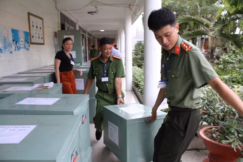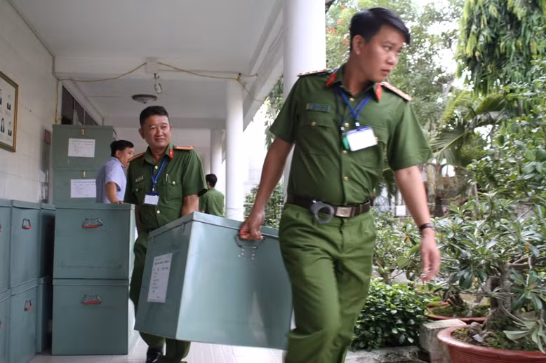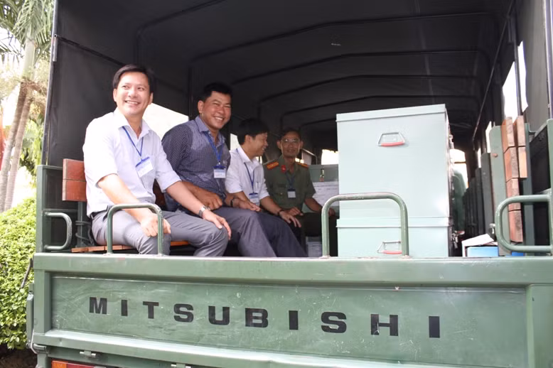 Tháp tùng xe chở đề thi có lực lượng cảnh sát bảo vệ, Thanh tra Sở, Thanh tra trường ĐH phối hợp.
