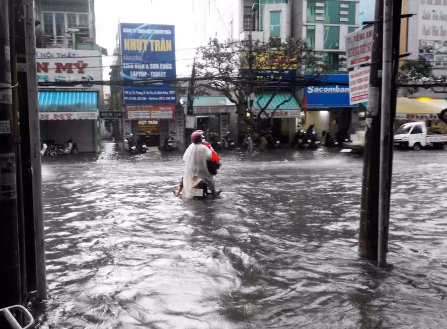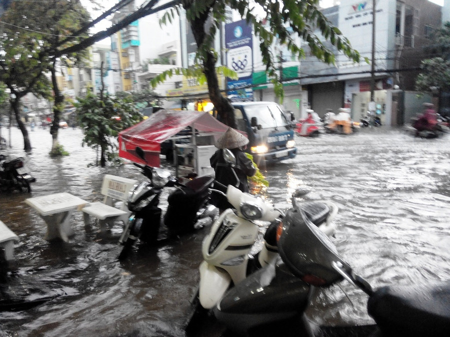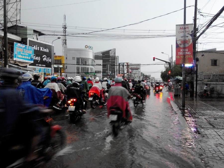 Cơn mưa to đã làm nhiều tuyến đường nội ô TP Cần Thơ bị ngập sâu, như đường Trần Hưng Đạo (đoạn bệnh viện Nhi Đồng) ngập sâu trên 0,5m; đường Lý Tự Trọng, đường Nguyễn Việt Hồng, đường Mậu Thân, đường 3/2, 30 tháng 4, Trần Văn Hoài… ngập sâu từ 0,4 - 0,6m, khiến việc đi lại của người dân vào giờ tan tầm vô cùng khó khăn.