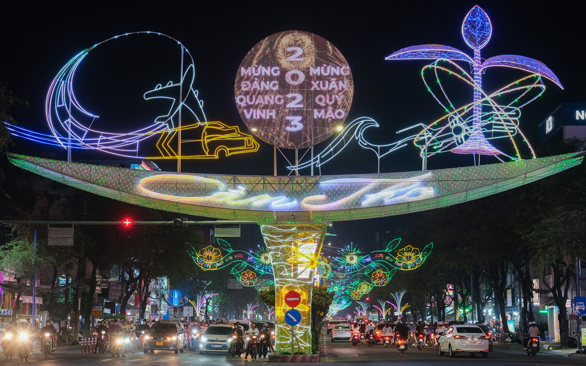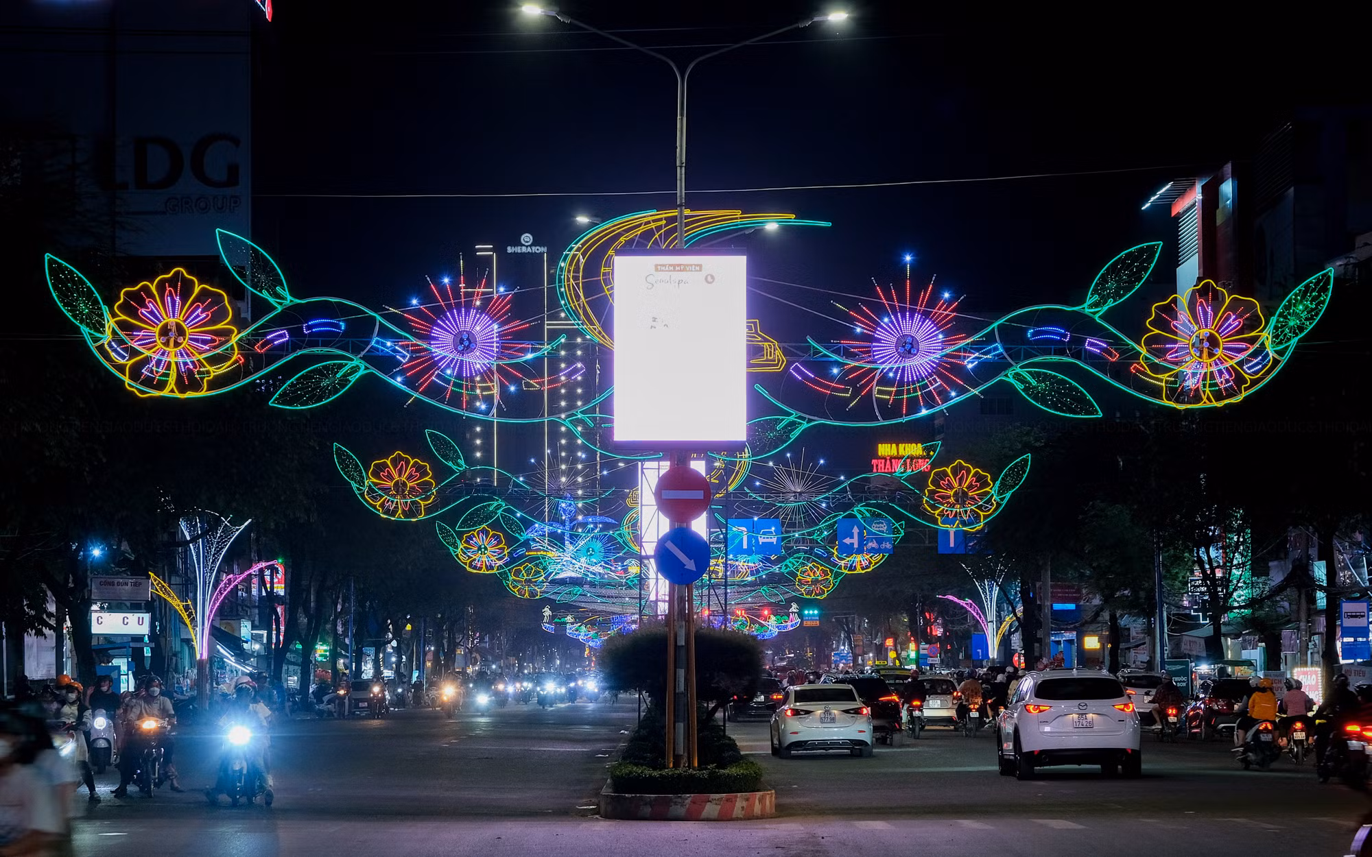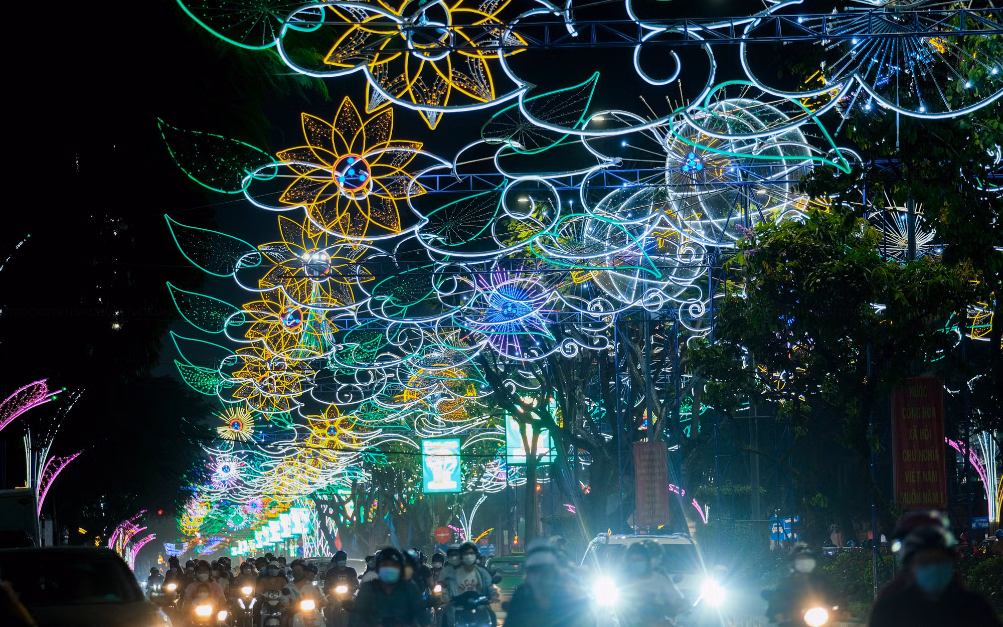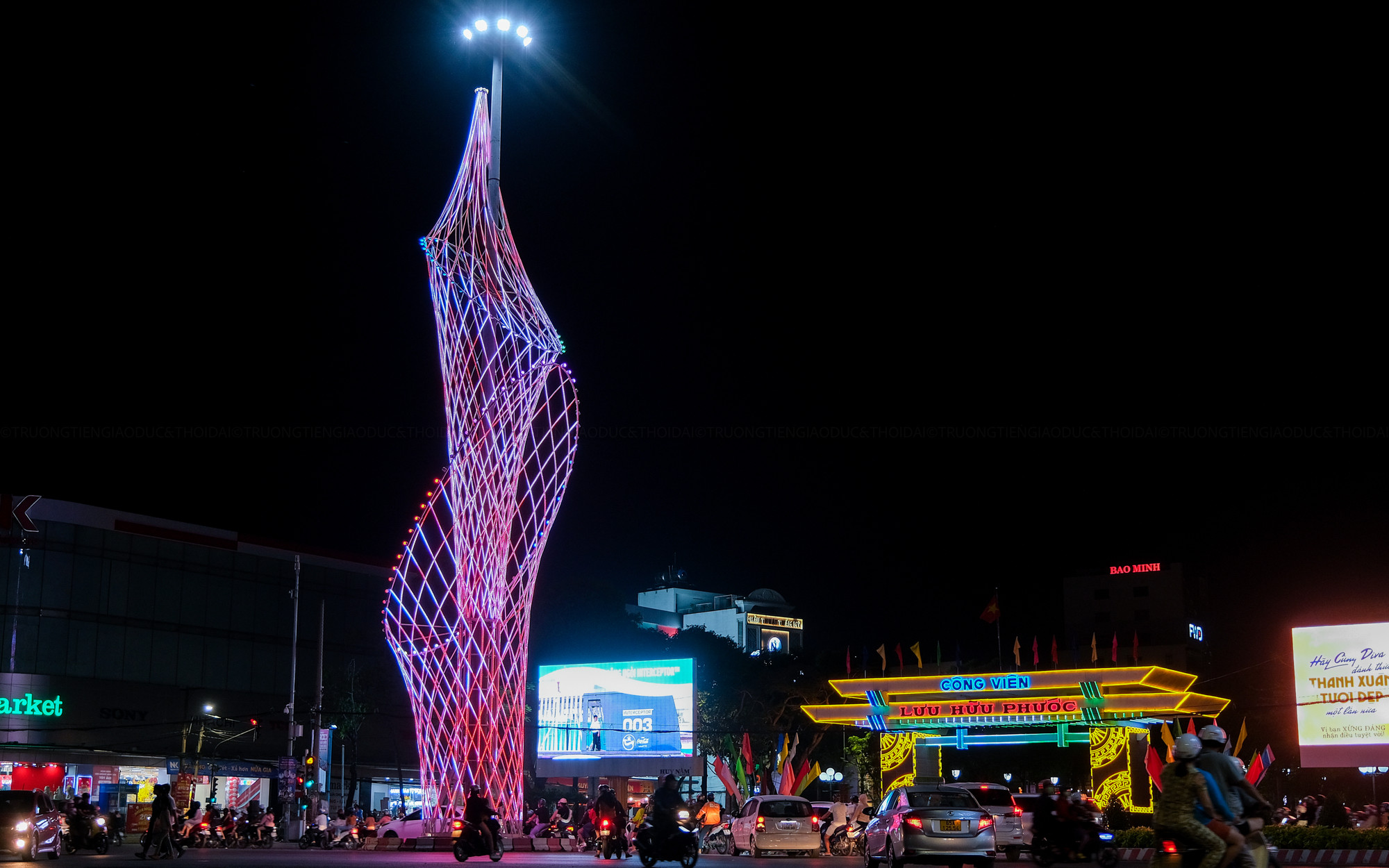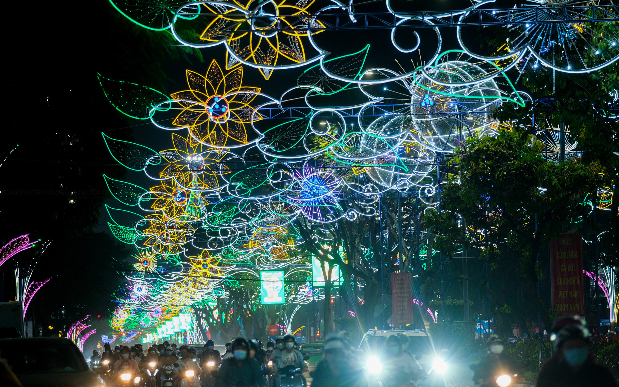 Theo đơn vị thực hiện, đường đèn được ứng dụng tối đa công nghệ led hiện đại, xử lý chuyển đổi màu sắc liên tục để tăng sức hấp dẫn. Cùng với đó là nghệ thuật sắp xếp hài hòa theo từng khối, nổi bật gam màu chủ đạo, tạo tầm nhìn thẳng xuyên suốt.