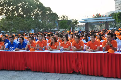 Sau buổi lễ, hơn 1.000 cán bộ, đoàn viên thanh niên đi bộ diễu hành quanh các tuyến đường ở trung tâm TP Cần Thơ.
