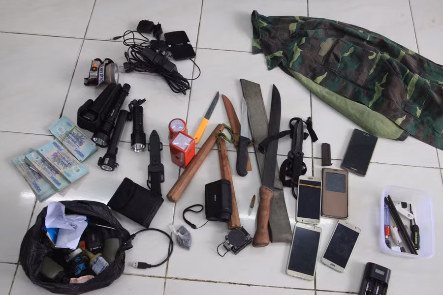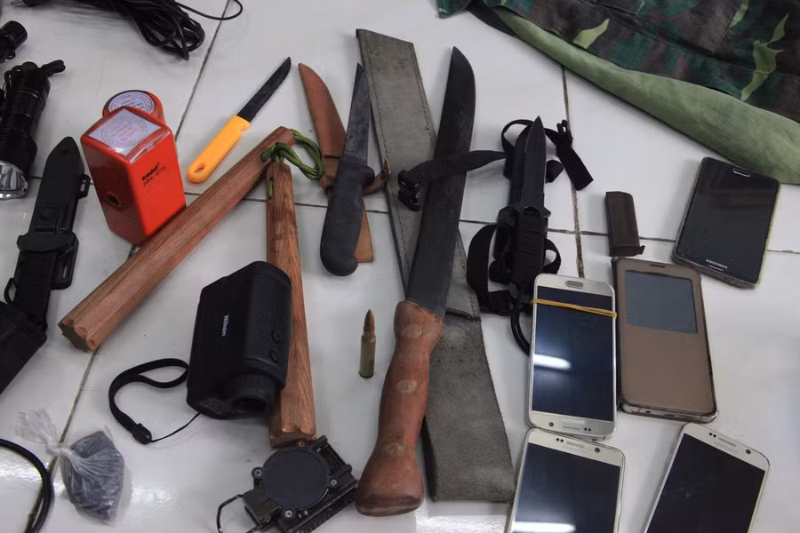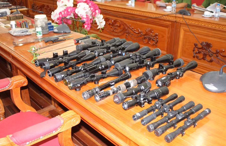 Ngoài ra còn có 1.855 viên đạn các loại, 2 ôtô, 5 cặp côn nhị và 8 dao các loại và 9 điện thoại di động…