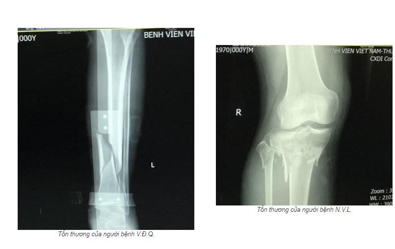 Cả 2 bệnh nhân đều bị tổn thương gãy chân do tai nạn giao thông. Sau khi vào các các cơ sở y tế kiểm tra đều phát hiện gãy xương và được chỉ định nhập viện để điều trị. Tuy nhiên, cả 2 đều xin về để tự điều trị tại nhà bằng cách đắp lá.