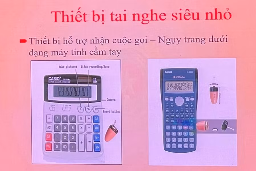 Ngoài ra còn có các thiết bị khác hỗ trợ nhận cuộc gọi ngụy trang dưới dạng thẻ ATM, ngụy trang dưới dạng bút viết, máy tính. Ông Hải cho rằng, theo quy chế thí sinh không được mang máy tính có thẻ sim hoặc có sóng điện thoại vào phòng thi nhưng nếu không được kiểm tra kỹ thì rất khó phát hiện.
