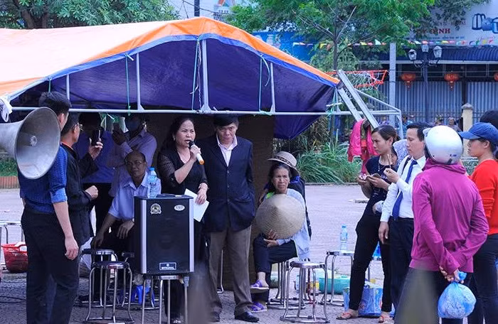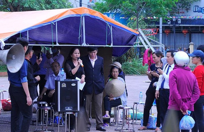 Bà Lan cùng người dân Đồng Tâm trong "điểm nóng" ngày ông Nguyễn Đức Chung về đối thoại.