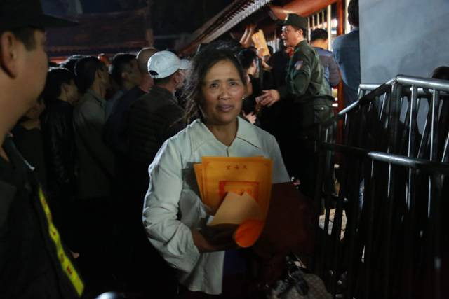 Tại các điểm phát ấn, lực lượng an ninh phải làm việc hết sức vất vả, nhiều người dù đã cầm trên tay cánh ấn đầu năm nhưng vẫn muốn xin thêm, nên lực lượng chức năng phải liên tục nhắc nhở