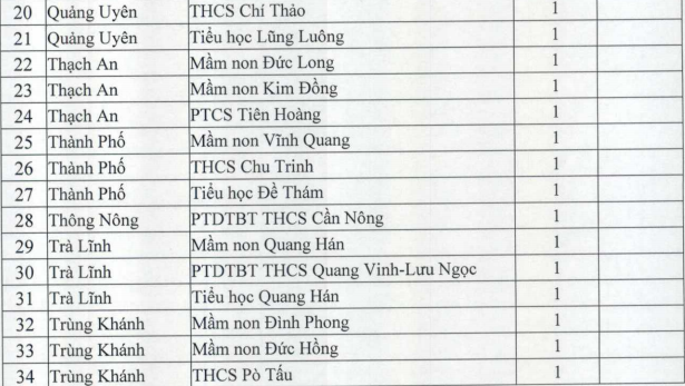 Theo đó, các trường được cấp giấy chứng nhận đạt tiêu chuẩn chất lượng giáo dục gồm 12 trường mầm non, 9 trường tiểu học và 13 trường THCS.
