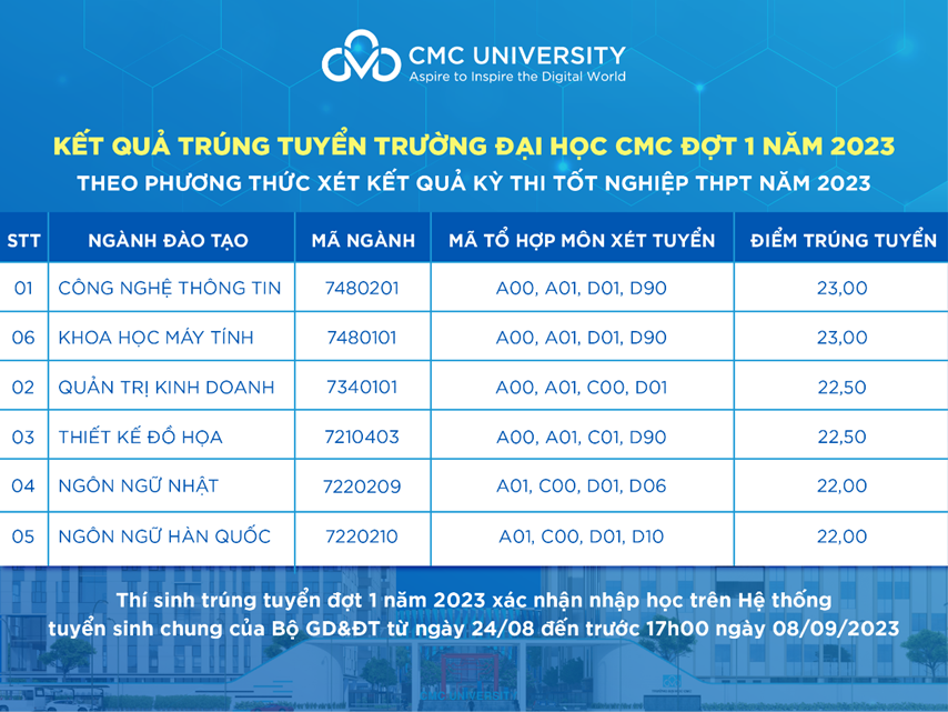 Thí sinh trúng tuyển theo Phương thức sử dụng kết quả thi tốt nghiệp THPT sau khi xác nhận nhập học trên hệ thống của Bộ GD&ĐT sẽ nhập học tại trường và đăng ký ngành/chuyên ngành từ 12-15/9/2023.