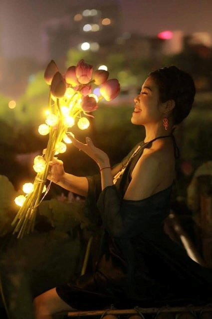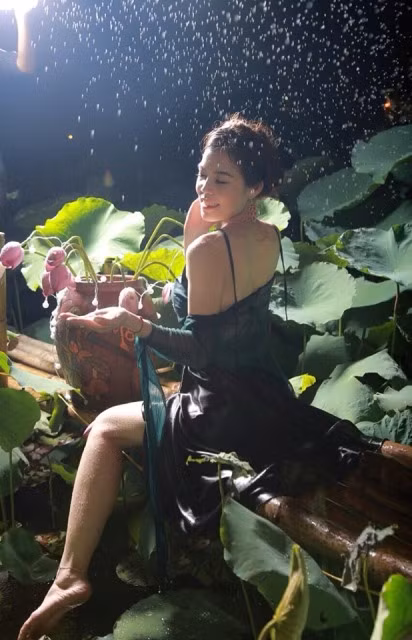 Bộ ảnh được thực hiện vào buổi tối, khi cả đầm sen đều rơi vào yên lặng nhưng điểm sáng là gương mặt của cô gái trẻ khiến cả bộ ảnh rực rỡ như truyền đi thông điệp: Vượt qua khó khăn trong cuộc sống để vươn mình lên thành những điểm sáng tích cực, có ý nghĩa.