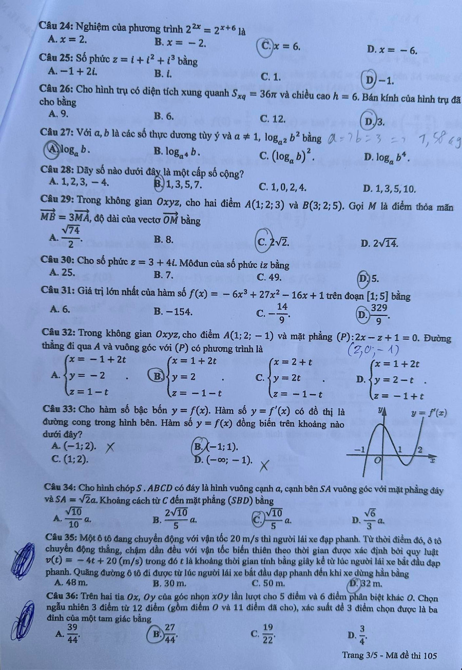 Mã đề 107 chỉ có 1 câu toán thực tế là bài chuyển động cũng quen thuộc với thí sinh. Không có câu về hình không gian quá khó như những năm trước.