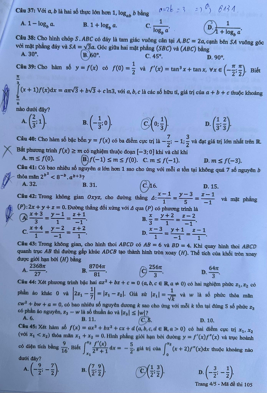 Những câu 39, 40, 41, 46, 47, 48 là mức độ khá và quen thuộc, những câu khó hơn nằm ở phía sau, từ câu 39 có sự khác biệt hẳn so với đề minh họa.