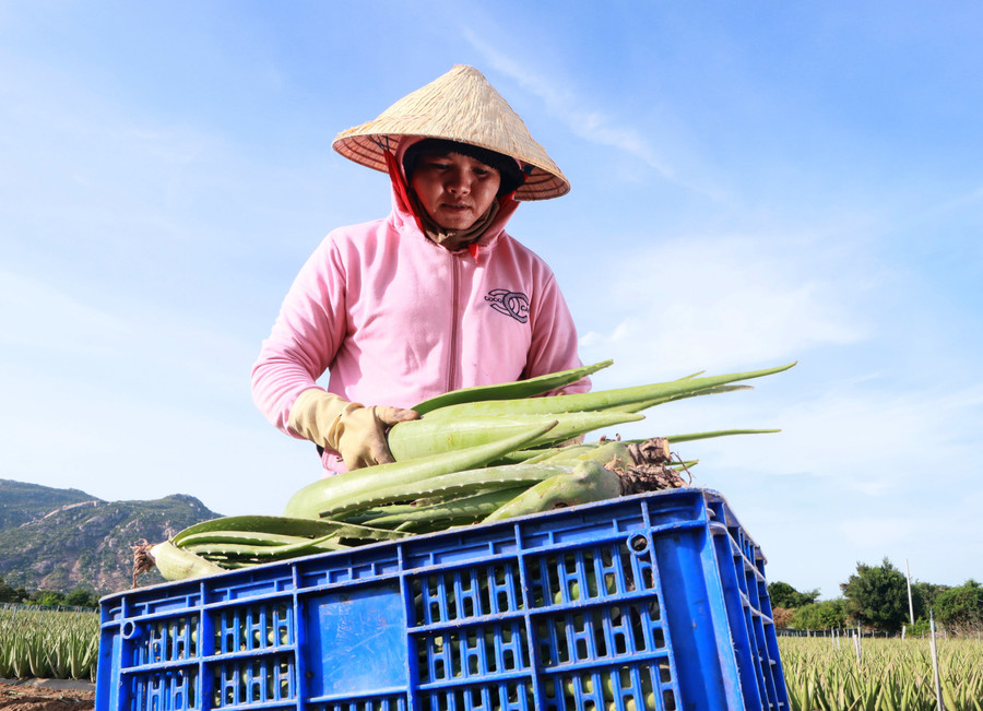 | Nông dân Ninh Thuận đang có cuộc sống tốt hơn nhờ trồng cây nha đam. Ảnh: GC Food |