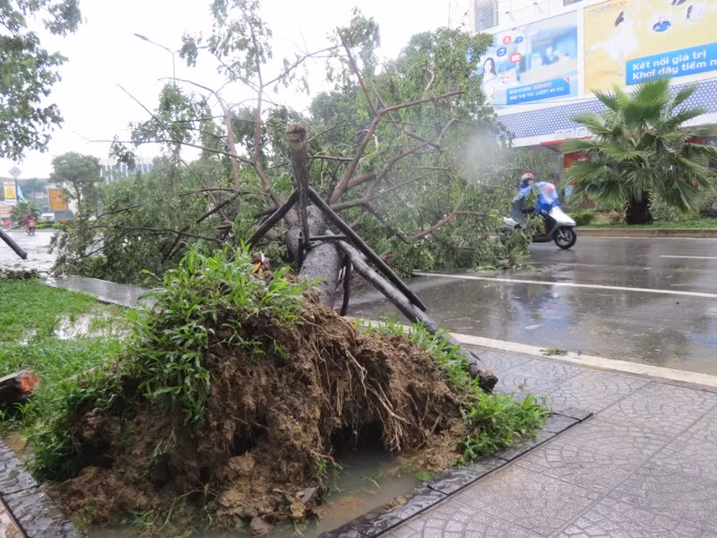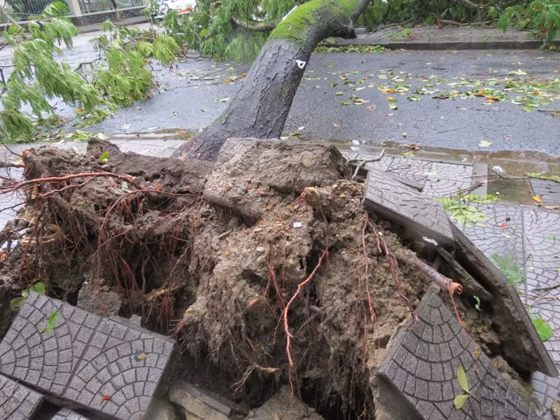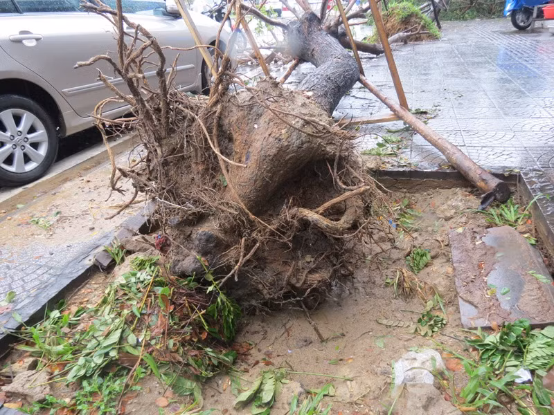 Một số hình ảnh cây xanh cổ thụ Huế bật gốc sau khi áp thấp nhiệt đới đi qua thành phố này: