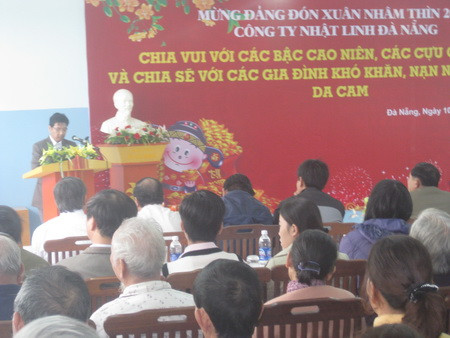 (GD&TĐ) - Nhân dịp Xuân Nhâm Thìn 2012, sáng ngày 16/1/2012, tại Hội trường Nhà máy sản xuất, Công ty thiết bị giáo dục Nhật Linh Đà Nẵng đã tổ chức Lễ trao quà Tết tới các bậc cao niên, các cựu chiến binh và chia sẻ với các gia đình khó khăn, các nạn nhân chất độc màu da cam.