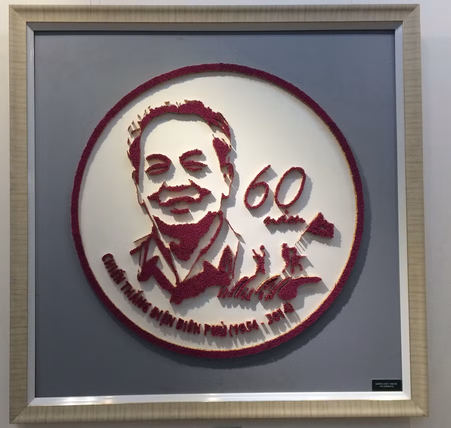 Tại triển lãm, người xem được chiêm ngưỡng tác phẩm độc đáo của một “nghệ sĩ” không chuyên, đó là chị Ngô Thị Thục (Hà Nội). Chị đã sử dụng hơn 6 vạn que diêm để tạo hình Đại tướng Võ Nguyên Giáp.