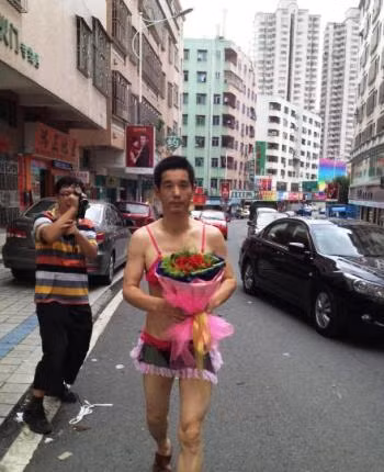 Lian quen bạn gái, Liao (ngoài 30 tuổi) cách đây 10 năm. Tuy nhiên, họ bắt đầu yêu nhau chỉ cách đây 1 năm khi Lian giúp Liao sửa nhà. Bạn gái của anh Lian muốn anh mặc đồ lót màu hồng đến cầu hôn cô ở nơi công cộng và anh đã không ngần ngại.